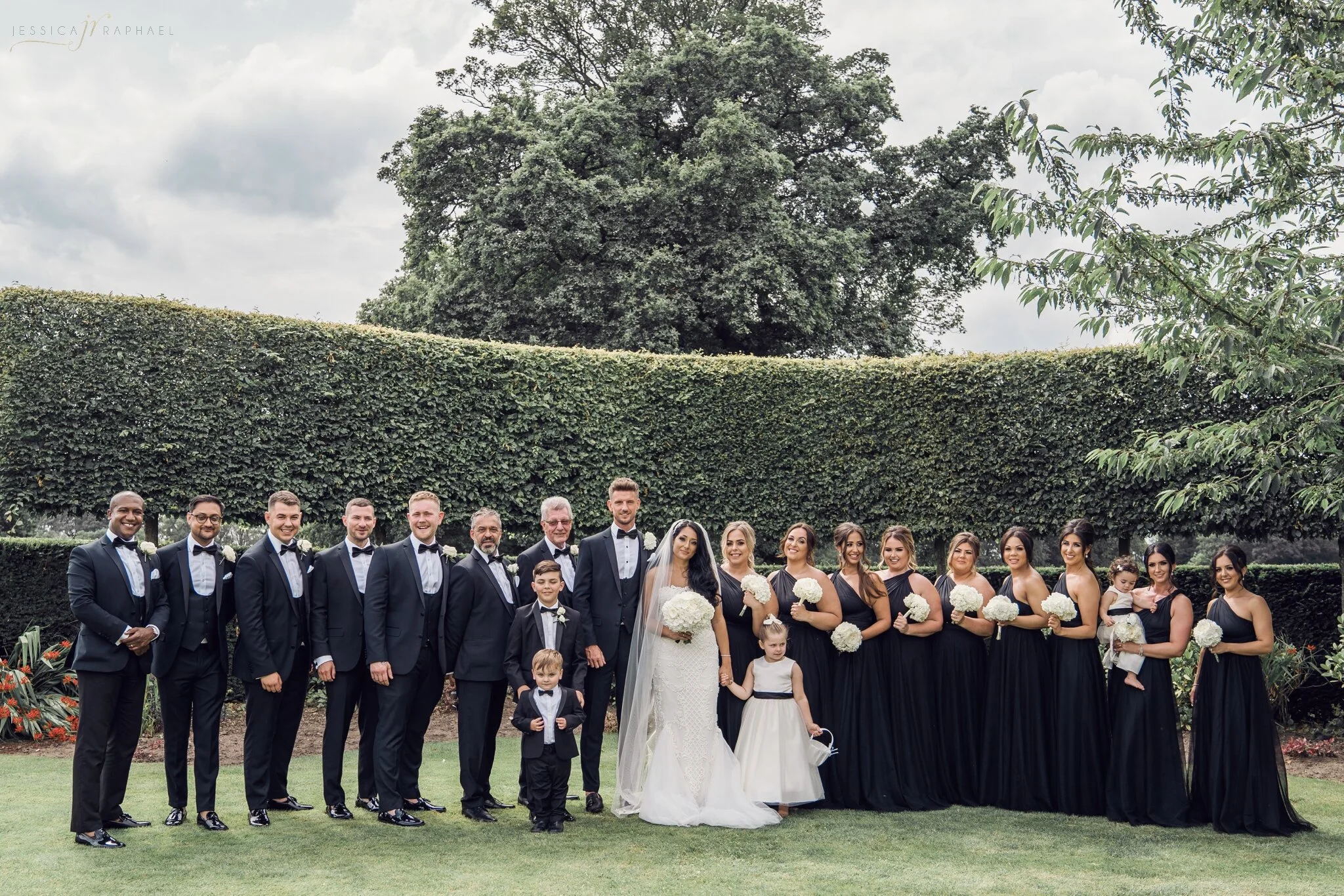After a gorgeous (& very hot) ceremony, Yasmin & James were greeted by their dog Bertie. I always love doing these photos but shoot as quick as I can as nobody wants paw prints on the dress! Now I have my own dog, I really understand why couples want to see them & have a photo, even if it is for five minutes! After this, we all went to the lawn for a wonderful atmospheric drinks reception in the sunshine. The large amount of guests kept myself & Rob very busy along with the family & couple portraits. We then went to have a look at their amazing wedding breakfast room with Yasmin & James, again I think this is a lovely thing to do so you can get a photo of them surrounded by all of their decor & ideas before the food comes out & drinks cover the tables. After some very lovely speeches, everyone was ‘merry’ so I did a few more B&G portraits & general natural shots now everyone was a bit more confident in front of the camera! Not that this group needed confidence…